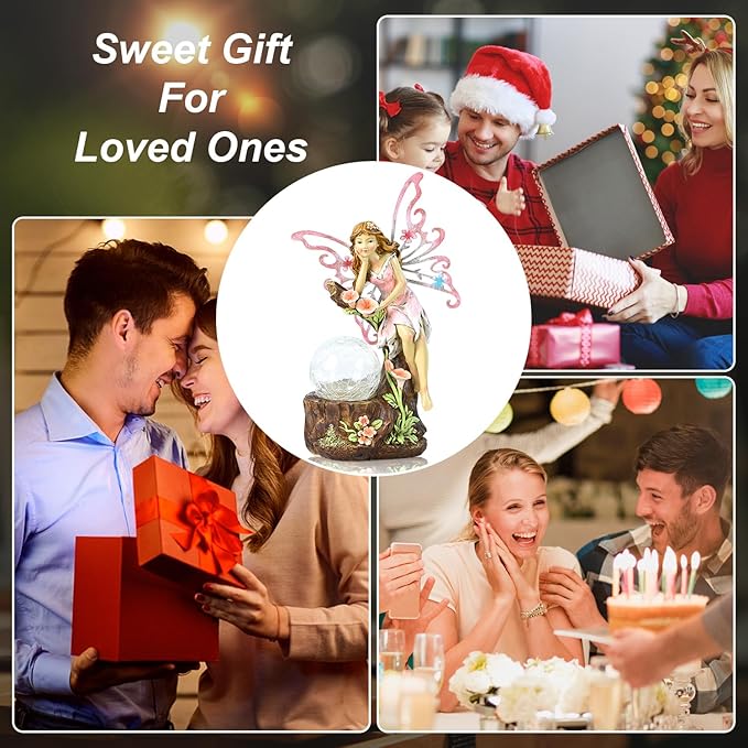 - 【UNIQUE GARDEN DECOR】Yiosax garden flower fairy statue outdoor decor,features beautiful crafted details and vibrant colors,this fairy angel statue and solar led cracked glass ball can make your garden hospitable,adding a lot of characters to your patio,backyard,lawn,window sills,flower bed