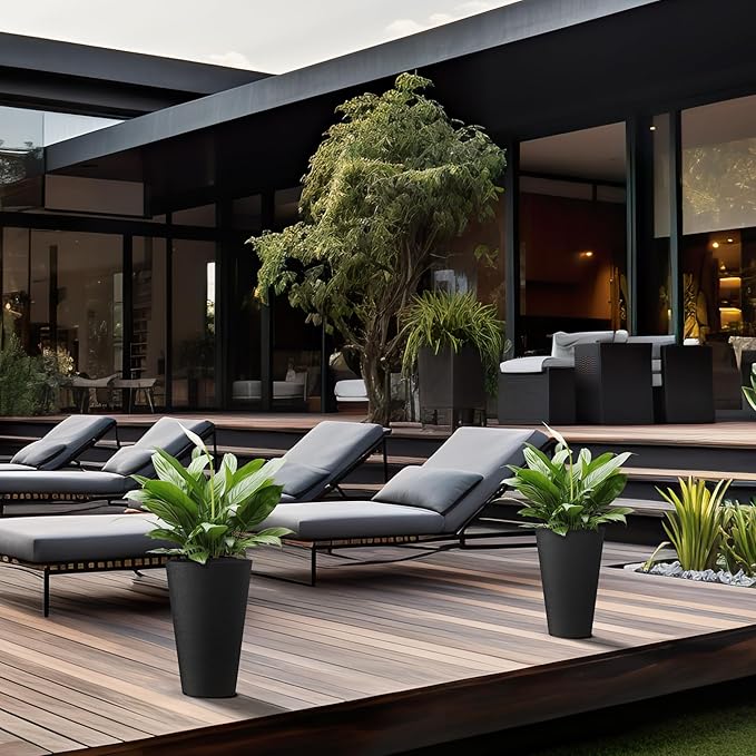 - Minimalist Chic - Elevate your space with these tall and wide planters, embodying sleek lines and a contemporary black finish—a defining trend in modern landscape design. The textured surface introduces an artistic touch to your garden, patio, office, living room, or front door area.