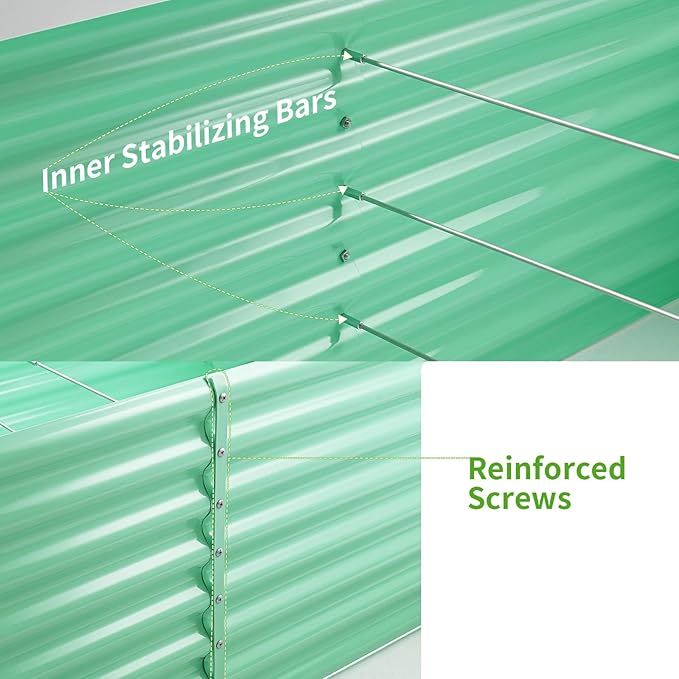 - 【Sturdy and Durable】The raised bed is made of thickened galvanized metal for strength and durability. The surface is coated with an upgraded powder coating for strong rust and corrosion resistance for long term use.
