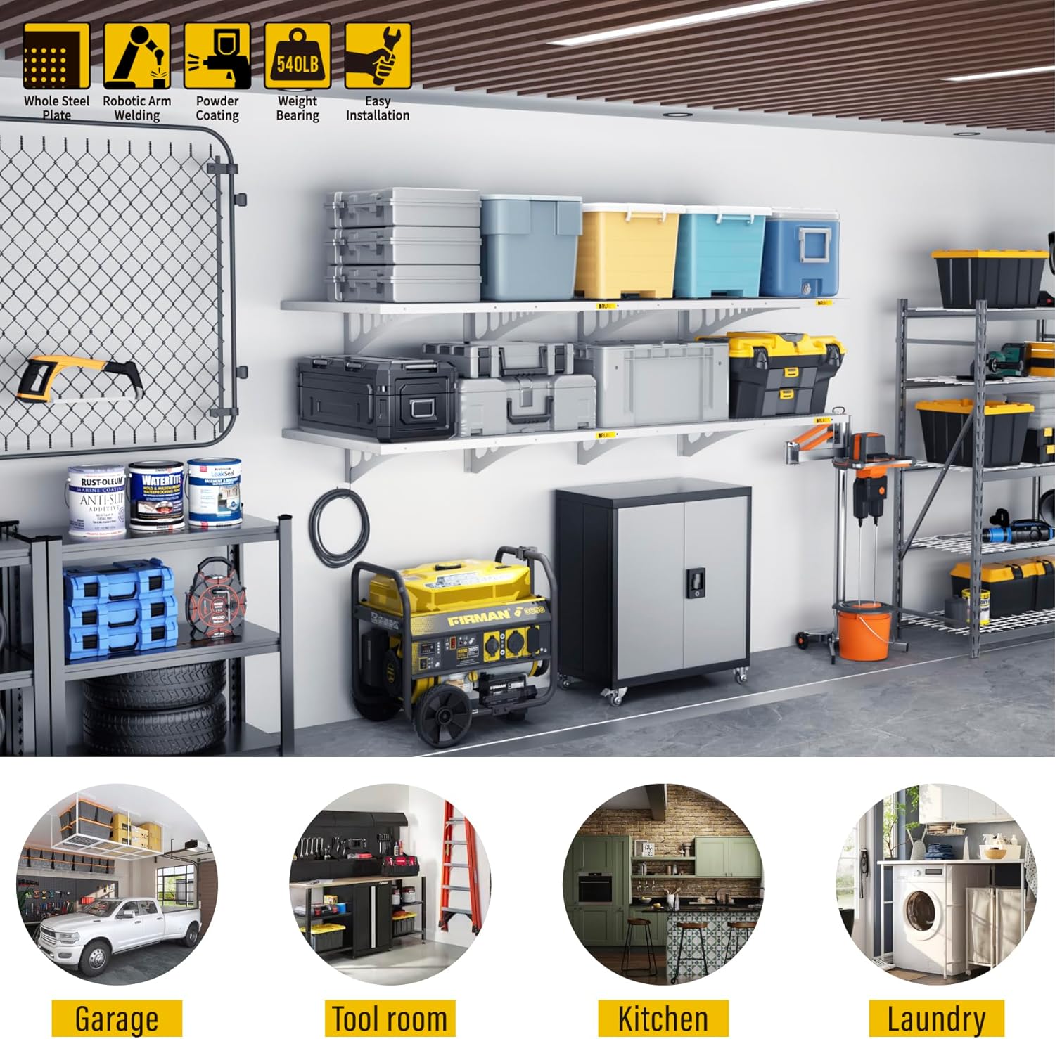4Pack 2x3ft Adjustable Metal Garage Wall Shelving Heavy Duty Garage Storage Shelf Wall Mounted White
