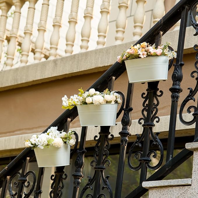 - Ease of use: Iron railing hanging planters is suitable for both outdoor and indoor use, and the included detachable hooks can be easily hung anywhere, adding color and vitality to your living environment.