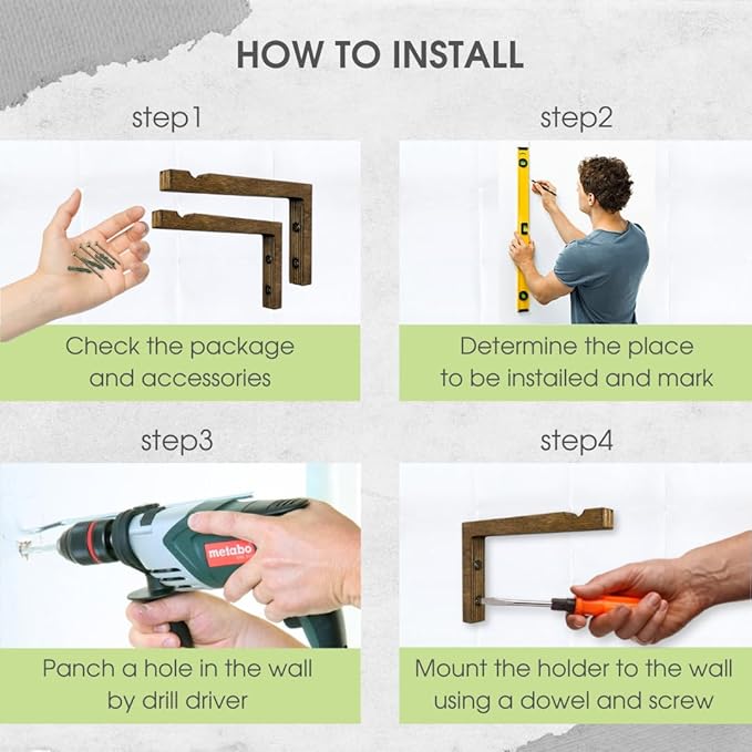 - EASY INSTALLATION: With the included hardware and easy straightforward instructions, mounting our plant hanging bracket for wall is a breeze. Our hooks for plants comes come with 4 screws, 4 dowels and 4 self-adhesive screw covers for installation.
