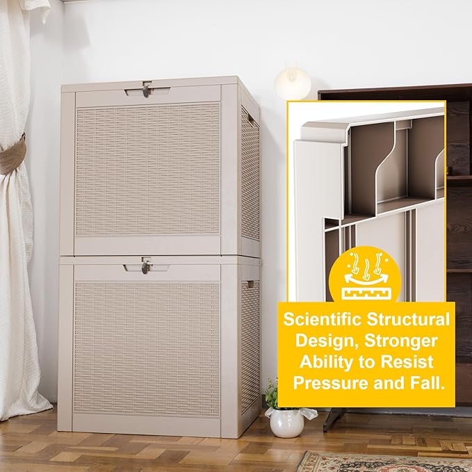- 𝐃𝐮𝐫𝐚𝐛𝐥𝐞 𝐌𝐚𝐭𝐞𝐫𝐢𝐚𝐥 - Made from high-quality resin material, this deck box provides unyielding protection for your belongings. With up to 1000 SGS UV protection, your outdoor storage box will never warp, fade, or crack. It withstands harsh weather, intense sunlight, and cold climates. Whether it's the sun-drenched summer or the stormy winter, your items will be safely stored, remaining in pristine condition.
