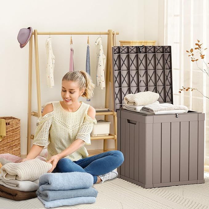 - 𝐂𝐨𝐦𝐩𝐚𝐜𝐭 𝐲𝐞𝐭 𝐏𝐨𝐰𝐞𝐫𝐟𝐮𝐥 - With product dimensions of 22.1"L x 22.1"W x 24.2"H , Although this outdoor storage box has a storage capacity of only 28 gallons, but it can hold a variety of additional items in your backyard, such as patio cushions, pillows, gardening tools, and hoses. This outdoor storage box is the best choice for storing small items.Applicable age: 0 years and above