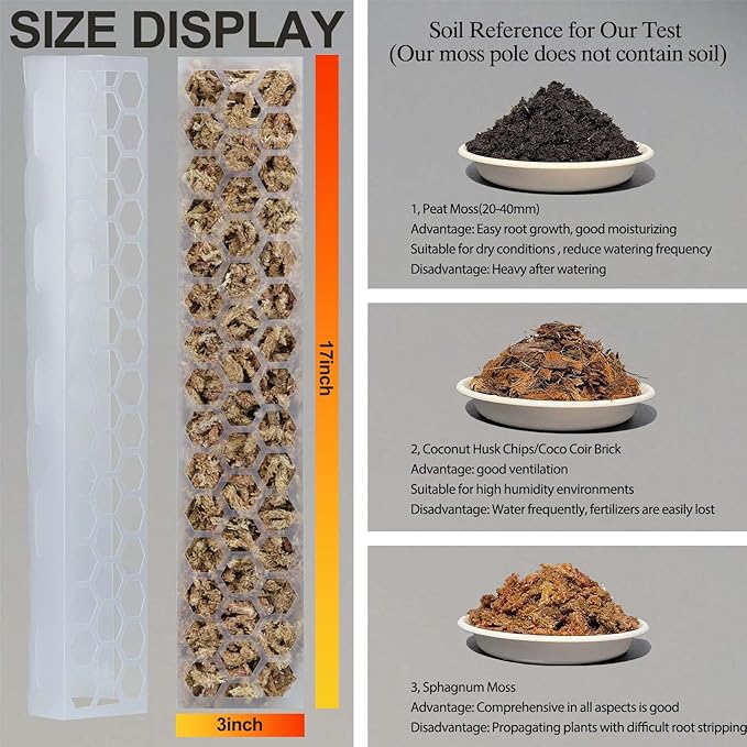- [Perfect an Ideal Growth Environment] We strongly suggest using sphagnum moss or Coconut soil or soil mix with our plant sticks for best effect because it can provide water and micronutrients for creeping plants for a long time. Besides, our product will not end up rotting even if it stuck inside the soil for too long.