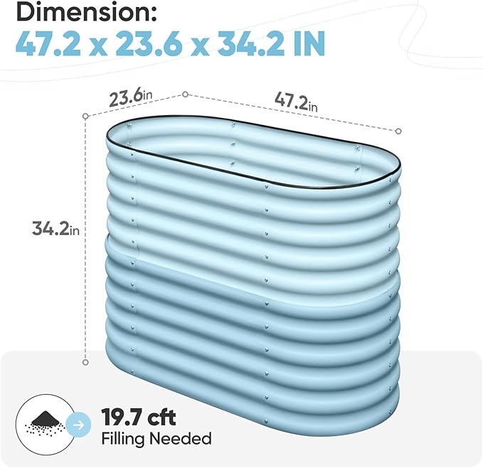 KING BIRD Raised Garden Bed 2.85 ft Tall 6 in 1 Galvanized Planter Garden Box Outdoor for Gardening, Deep Root Vegetables, Flowers 47.2X23.6X34.2 in, Light Blue