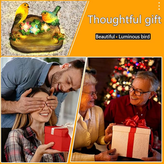 Gifts for Mom Solar LED Light Bird Statue Garden Art Decorations Balcony Bird Feeder Resin Stone Sculptures Women's Succulent Night Lights