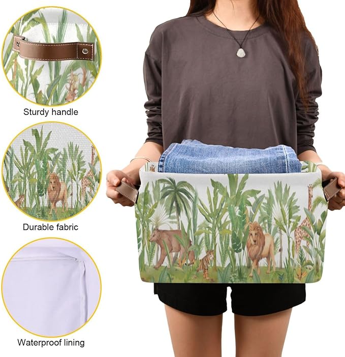 Animal Rectangular Storage Basket Organizer Bin Shelf Baskets For Home Office Dorm Lions Tigers Bears Giraffes Forests
