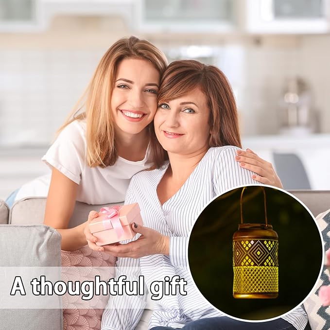 - Imaginative Garden Decor - Eandisom Outdoor Solar Lanterns are crafted from upgraded Sturdy metal, The retro appearance, with gold copper color and hollow out metal veneer, gorgeous color, casts bright and warm light in darkness, accompanied by gorgeous and graceful patterns, adding a beautiful atmosphere to the surrounding environment. Add illuminated charm to a garden, patio, porch and outdoor tabletop with these solar lantern lights. Make your outdoor spaces unique and amazing.