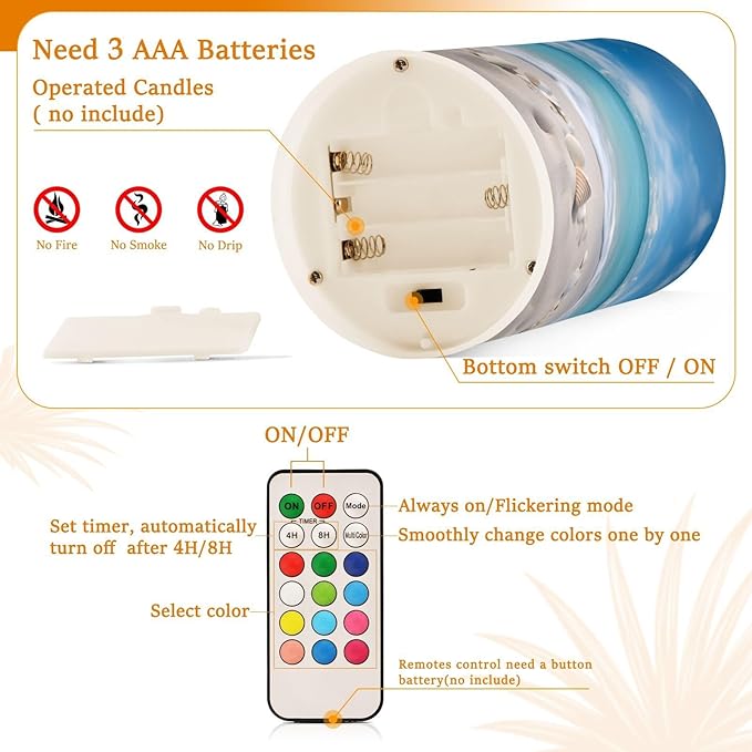 - Convenient Remote Functions: Includes an 18-key remote controller with a timer. You can control these candles remotely when they are placed somewhere difficult to touch. Set 4H/8H timers will save you trouble turning them on/off, they will come back on automatically at the same time every day. Also, you can adjust the light color as you want