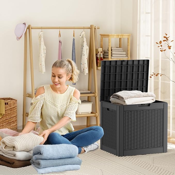 - Weatherproof material: This deck box is made of environmentally friendly polymer resin. It has better water and UV resistance than traditional wood. There is no need to worry about it fading and falling off in the coming years. Years of virtually no maintenance are required.