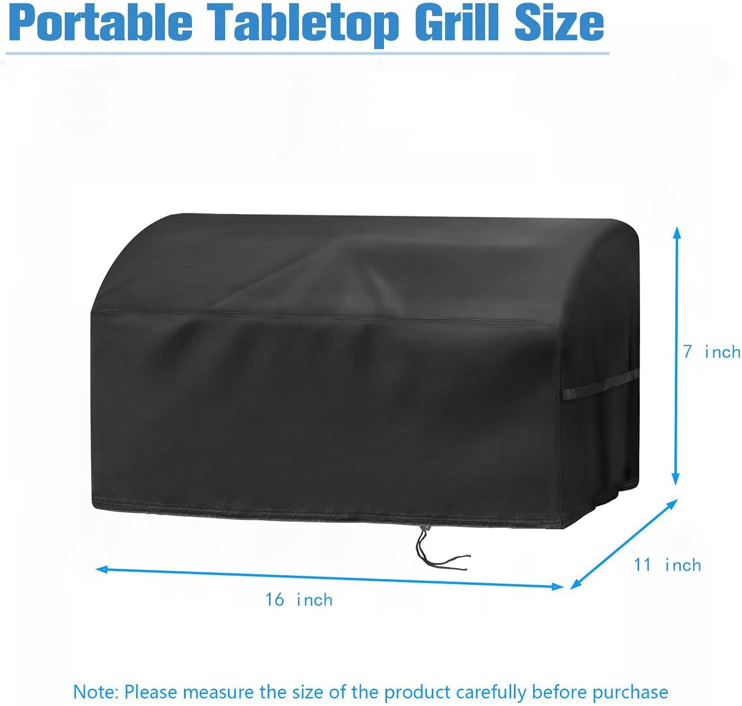 - Fit: 16"L x 11"W x 7"H; The outdoor tabletop grill cover is compatible with some small portable tabletop grills of similar size, fits like a glove