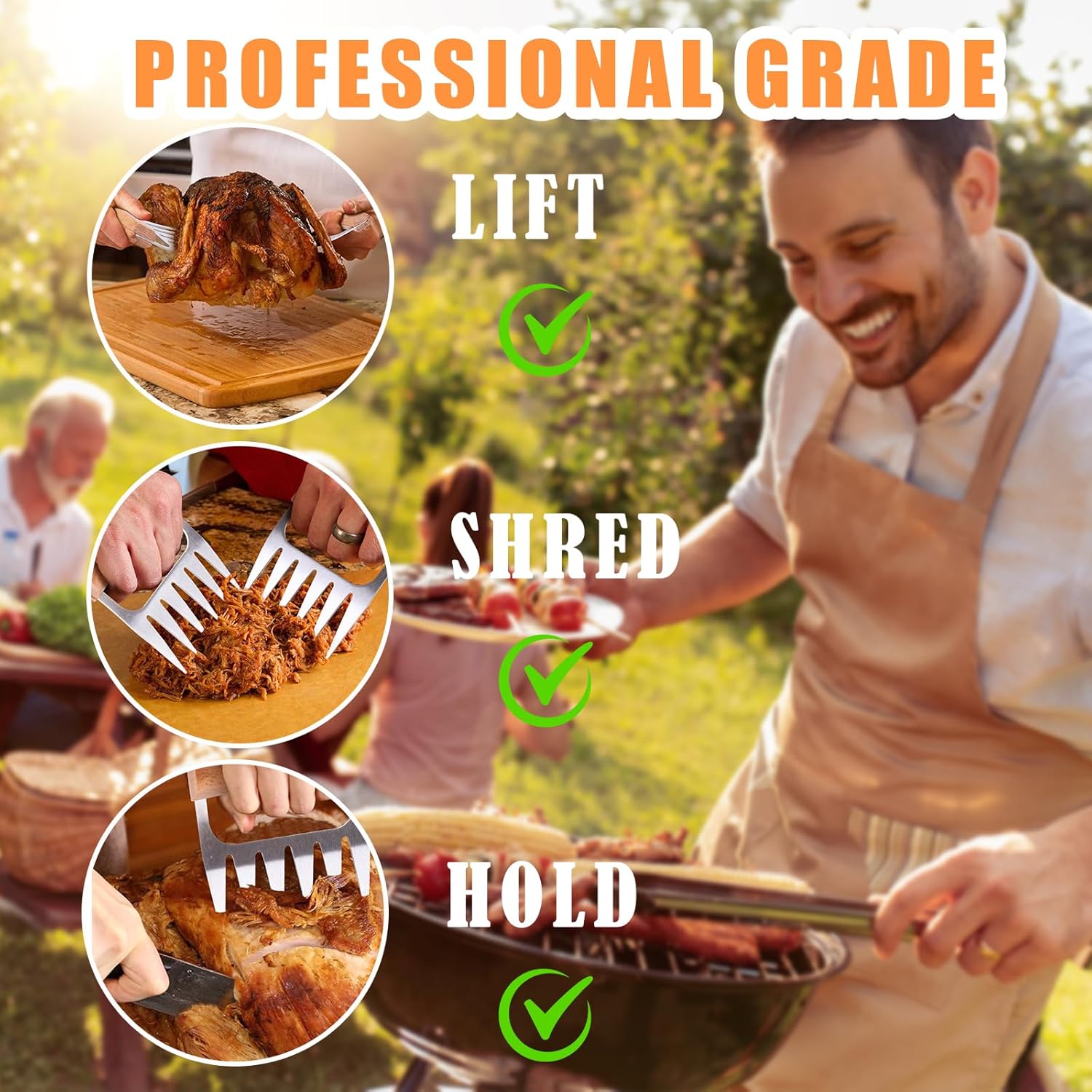 - 【Premium Stainless Steel BBQ Claws】Unlike others' plastic or nylon alternatives that can melt or bend, our metal meat claws for pulled pork are forged from heavy-duty 18/8 304 stainless steel, ensuring they never melt or bend and can withstand heat up to 1100 degrees.