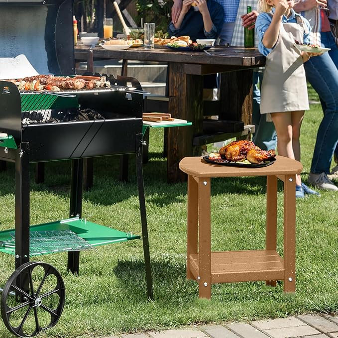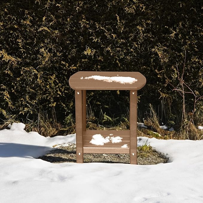 - 【DURABLE MATERIAL】This side tables are made of recycled plastic HDPE material that is more weather resistant than other poly lumber table.HDPE is an eco-friendly solution to wood.Weatherproof, heavy-duty construction withstands a range of environmental stressors,Weatherproof, heavy-duty construction withstands a range of environmental stressors