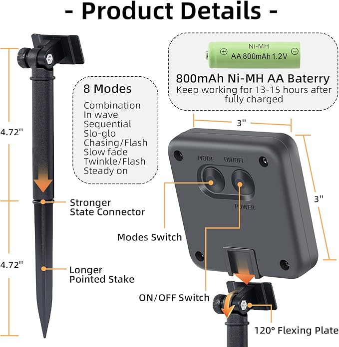 - 🌟【All weather durability】: These solar outdoor string lights have IP44 waterproof, dustproof, and weather resistant performance, and can operate stably in wind, frost, rain, snow, and extreme heat and cold. Its sturdy and durable materials and exquisite craftsmanship ensure that they can accompany you for a long time in your yard, garden or courtyard, spending every beautiful moment.