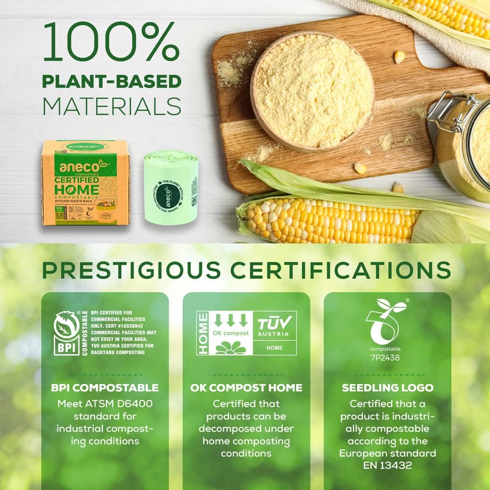 - π Proud to be one of few HOME compostable trash bags in the market, ANECO Compostable bag can decompose completely not only in industrial facilities but also in home system. Use these bags to collect kitchen scraps and put them straight into the compost dumpster, or bury and turn them into valuable compost for your garden