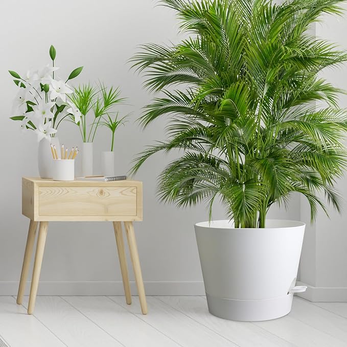 12 inch Large Self Watering Pots for Indoor Outdoor Plants, Flower Plant Pots with Mesh Drainage Holes for Garden House, Plastic Planters with Reservoir for Home, White
