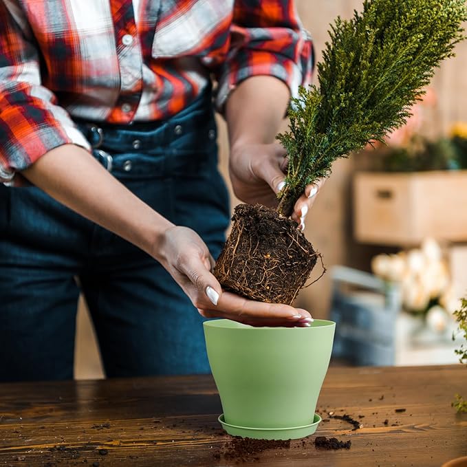 • 【Drainage Holes and Trays】Each plant pot features well-designed drainage holes at the bottom to ensure proper water flow. Additionally, saucers catch excess water, keeping your growing area clean and tidy while also ensuring that your plants remain hydrated without becoming waterlogged.