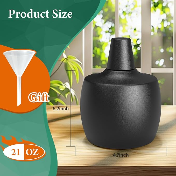 - Warm Note----Before igniting the wick, please do saturate it with oil. Recommend to use a funnel for easier oil filling.