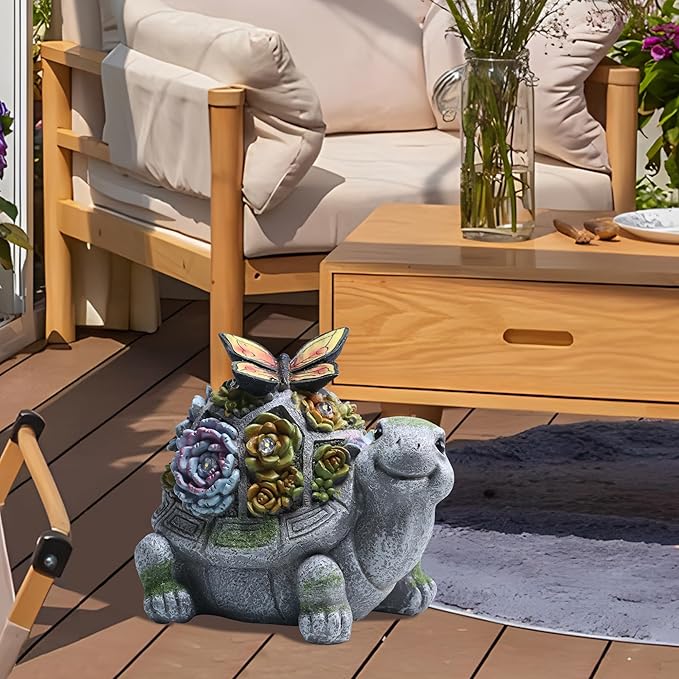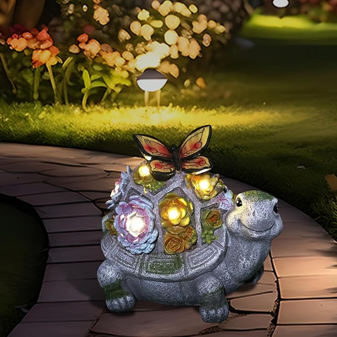 - 【Charming Garden Decor】The adorable garden turtle statue is the perfect addition to any garden. With intricate details and an attractive butterfly resting on the turtle's back, especially in the garden and courtyard, you can better feel its vitality. This tortoise decor doubles as a high-quality garden lamp, perfect gift for moms and women
