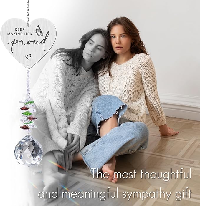 Keep Making Her Proud,Crystal Suncatcher Bereavement Keepsake,Memorial Gift for Loss of Mom,Grandma,Sister,Hanging Crystals Ornament for Window Rainbow Maker Prisms Home Decor Gift