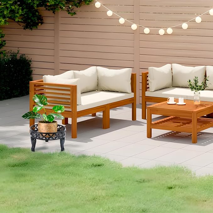 - Multi-Purpose: Plate Diameter: 25 CM / 9.8" Product Dimension: L:25 CM / 9.8" * H:15 CM /6"* W:25 CM /9.8". Flower stands for indoor plants suitable for most potted plants.Outdoor plant stands for patio,garden, balcony, courtyard, kitchen living room, apartment corner, coffee shop,company.Used to place pots for plants, pet snacks, fruit tray, picnics