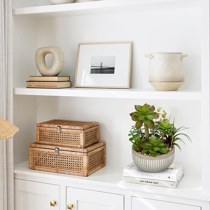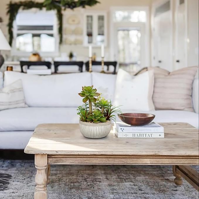 - Artificial potted plants decor: Small fake succulents are perfect for home, office desk, bedroom, bathroom shelf, kitchen, apartment, cafe, etc, faux plants in pots will add a natural accent to your home decor.