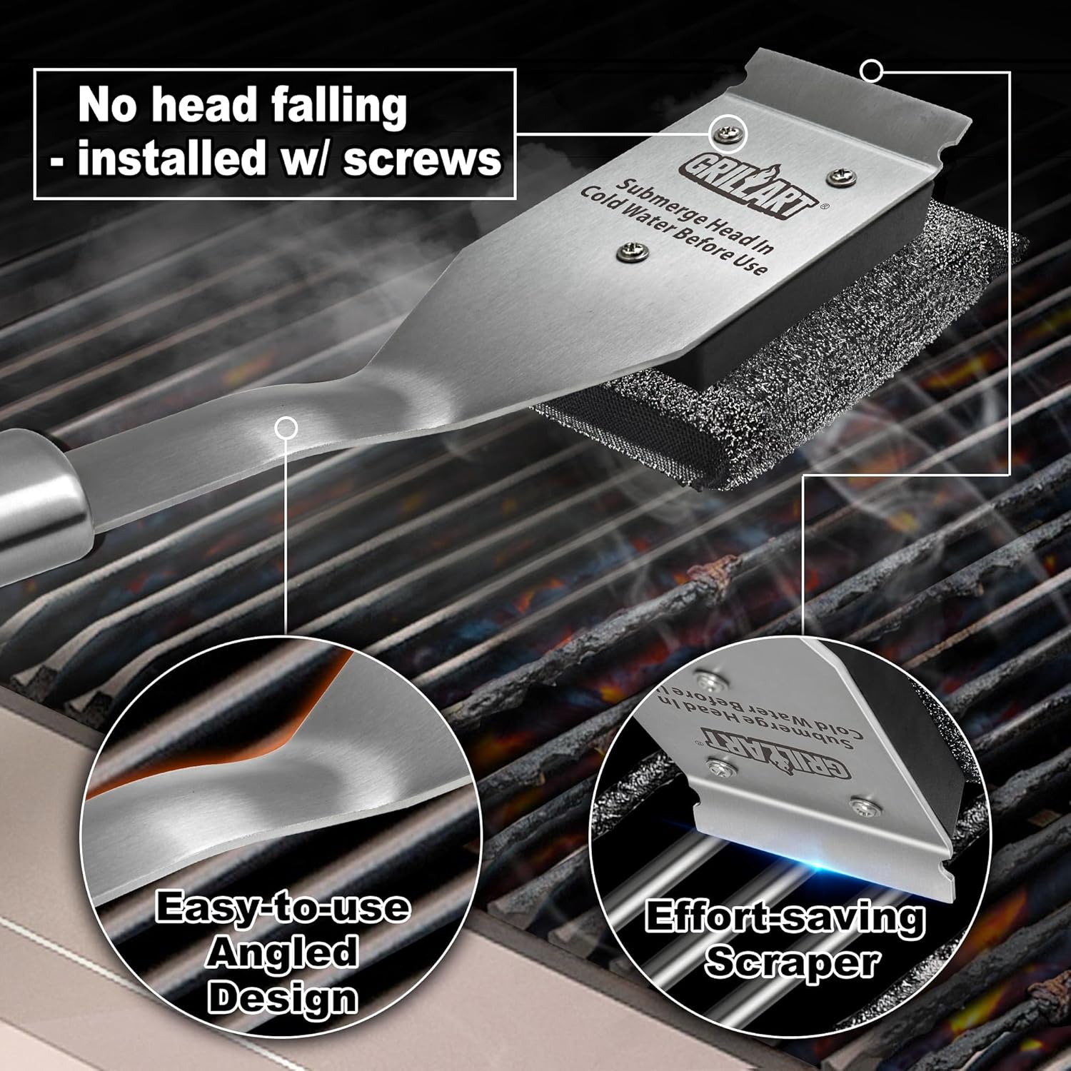 GRILLART Grill Brush Bristle Free, Safe Grill Brush for Outdoor Grill, SteamWizards BBQ Grill Cleaning Brush Kit, Replaceable Head Grill Scraper Tool, Grill Cleaner BBQ Accessories, Gifts for Men/Dad