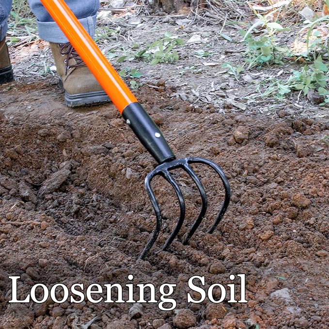 Cultivator for Gardening, 4 Tines Garden Cultivator with Fiberglass Handle, 58 Inches