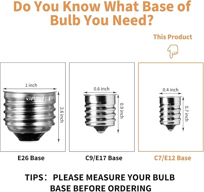 - Special Feature : Dimmable,120V, Edison Base, Fits C7 & E12 Sockets