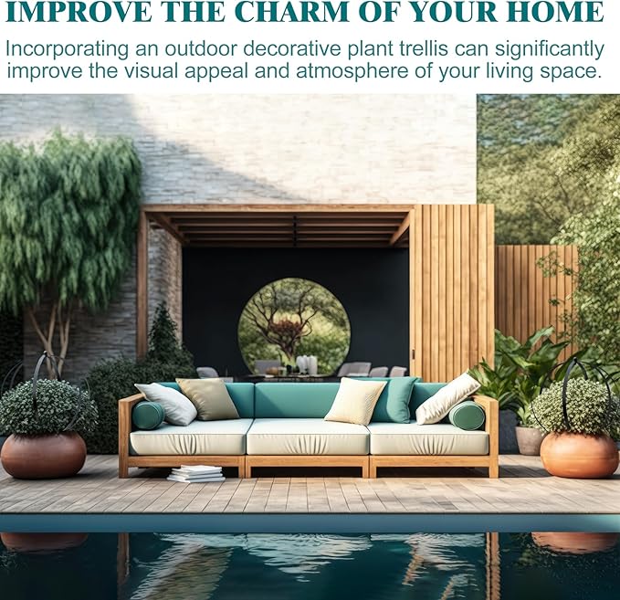 - Easy set up: Our ornamental trellis features a durable architectural circular shape, with 6 stakes for stability and longevity. Simple to install, it brings immediate elegance to your outdoor area, serving as an ideal support for outdoor climbing plants, indoor plant trellises, and potted plants