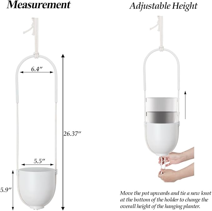 - Material: The hanging plant pot is made of iron and solid cotton rope, the pot and handle are sprayed at high temperature with matte white pigment, which is durable and rust-resistant. Light weight (No drainage hole)