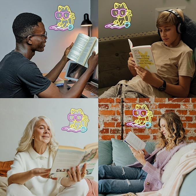 - Perfect Decoration: The Reading Cat LED sign can decorate your personal style and create a unique atmosphere. It can liven up any dull space. It is also an ideal gift for bedrooms, birthdays, Valentine's Day, Christmas, and other celebrations, perfect for anyone who enjoys a fun atmosphere.