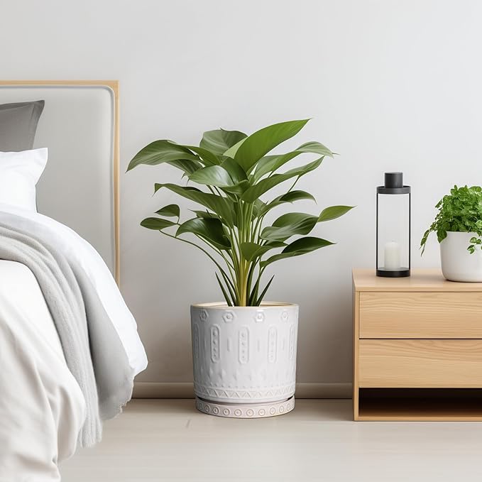 - Stylish Design: Creamy white color and bohemian or mid-century modern pattern of 10 inch plant pot add sophistication to any space. Their elegant finish enhances visual appeal and suits various decor styles