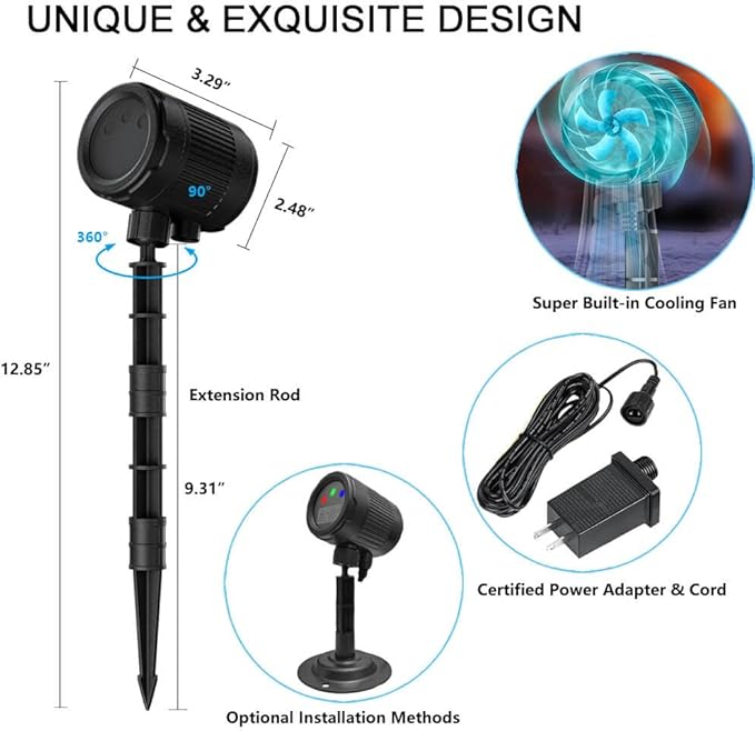 - Effortless Setup: Our projector lights feature a user-friendly design, allowing for quick and hassle-free installation without the need for complex tools. Simply position the projector, plug it in, and enjoy the enchanting light show.