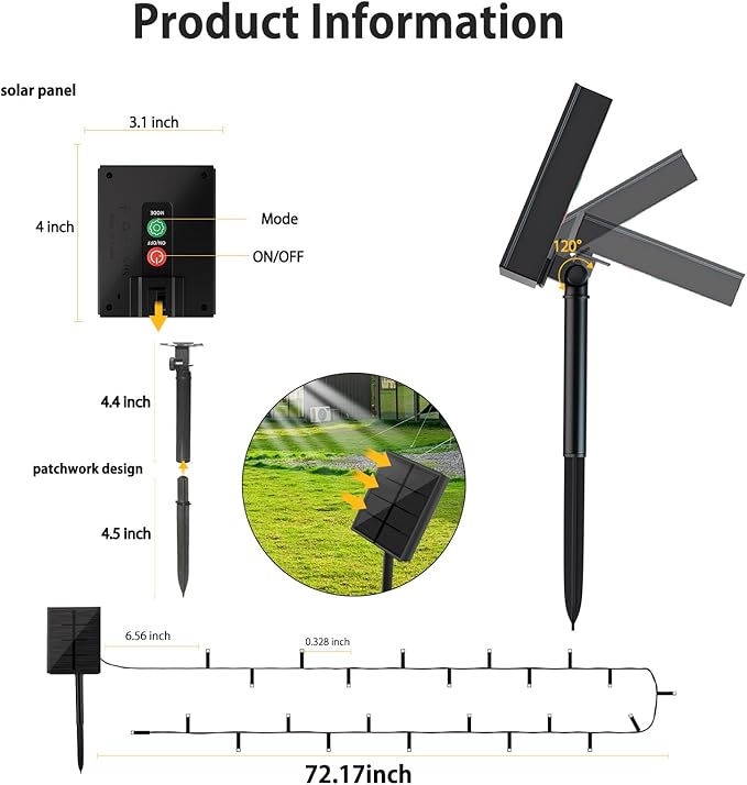 - 【8 Lighting Modes Solar Outdoor Lights】: This solar outdoor lights have 8 different lighting modes, which include waves, combination, fading, fireflies, chasing, twinkle, fading slowly, and steady on.They are exceptional in creating different aesthetic atmosphere within your environment,like Xmas,Birthday,Wedding,Party,Celebrations.