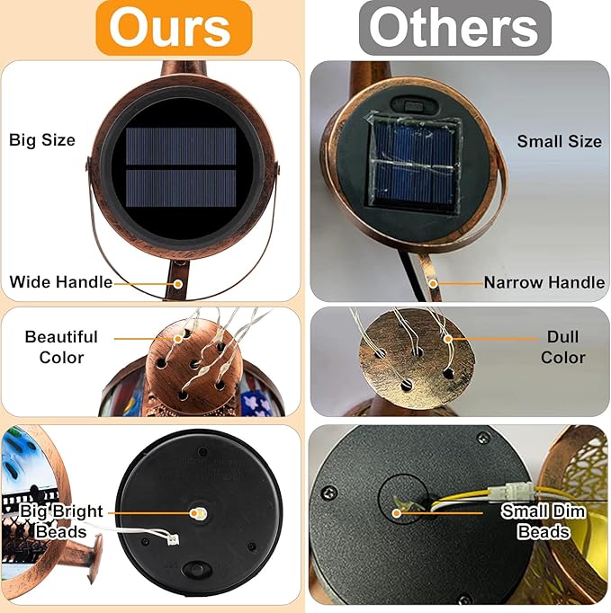 Larekook Solar Outdoor Watering Can Lights Decorative Path Lights, Metal Glass Solar Garden Light Outdoor Waterfall Decor Ornament for Yard Lighting Outside Flag