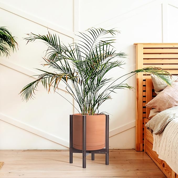 - A Complete Set: Mid-century terracotta planter, combined with a sculptural, solid wood stand that match perfectly together and looks great in anywhere.