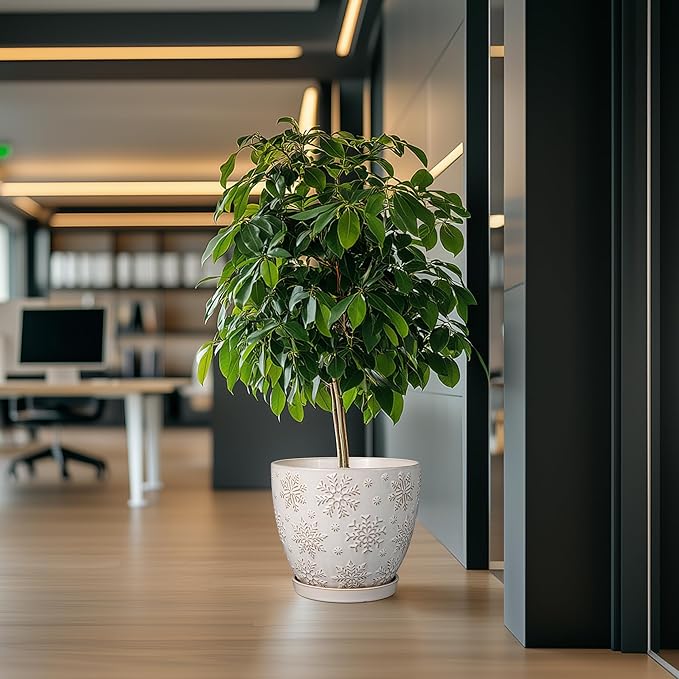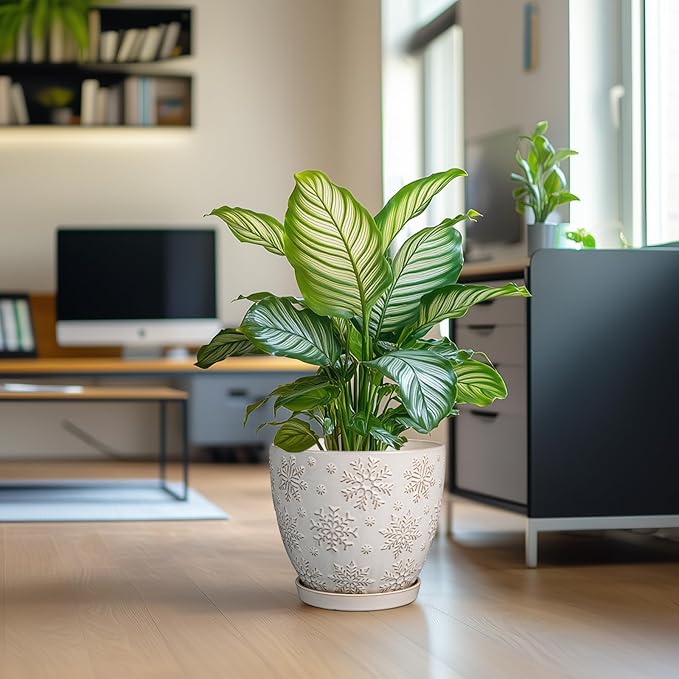 • Stylish Appearance: Our ceramic planter has a white main colour and a beautiful embossed snowflakes pattern on the surface, elegant appearance making it ideal for home decor, garden decor and office decor