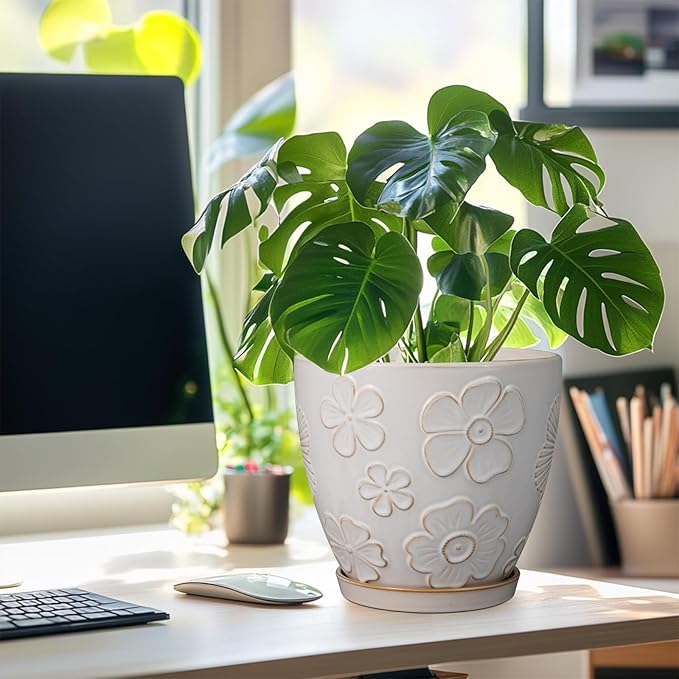 • Stylish Appearance: Our ceramic plant pot has a white main colour and a beautiful embossed petal pattern on the surface, elegant appearance making it ideal for home decor, garden decor and office decor