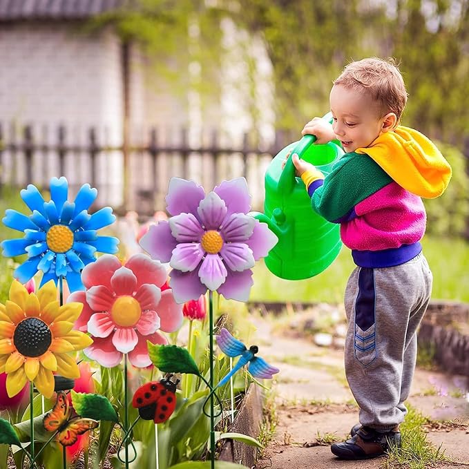 - 💐[4pc garden lights]:Each metal flower stake lights comes with different butterflies, bees, dragonflies, beetles to make your garden more vivid.