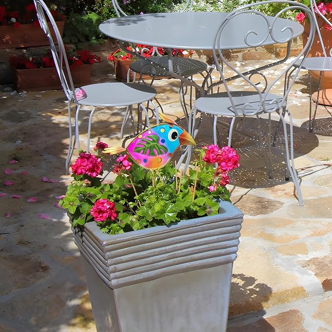 - 【Handmade】 This garden art decor is individually handmade with an emphasis on quality and attention to details to create an unique one. This suit consists of 3 different birds, hand-painted with blue, green and yellow which decorated with beautiful flowers. Intricate details make this piece stand out among your other decorative arts