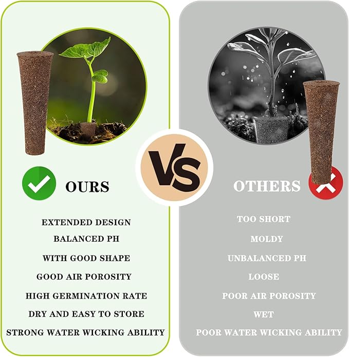 - Superior Growing Medium: Our grow sponges are crafted from 100% biochar cotton, known for its enhanced fertility, which supports robust plant growth. Compared to conventional seedling soil, these grow sponges maintain a balanced pH and offer excellent water absorption and moisture retention. This provides the ideal environment for seeds to germinate and roots to establish, while ensuring a mess-free, soil-free indoor growing experience throughout the year.