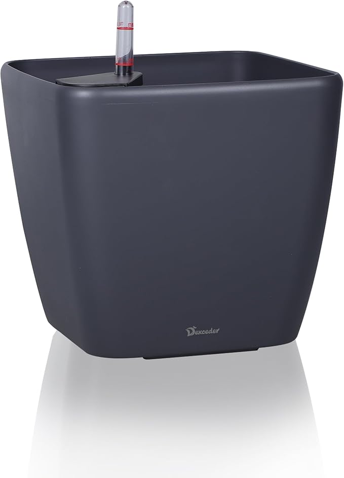 - SELF WATERING & NO MORE ROOT ROT - The smart unique sub-irrigation system is one of the most appealing aspects among all Dexceder planters. The easy-to-use separated integrated water reservoir or catcher- keeps your soil well aerated and automatic supplies plants with the right amount of ongoing moist air & nutrition for optimal growth. The insert indicator shows you the exact time to water again. The full water supply period can single-handedly last over 3 weeks based on different live plants