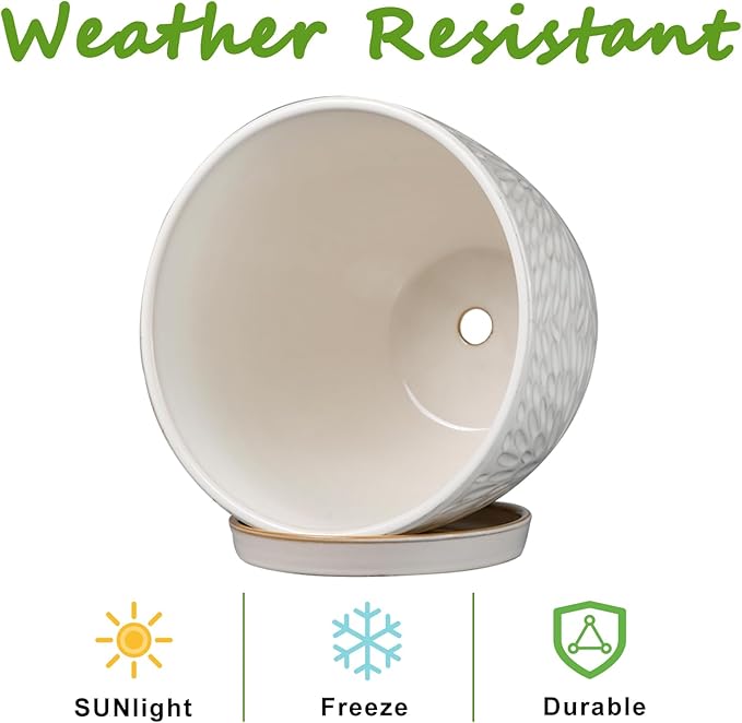 - Ideal Size: Each ceramic flower pot is 8.5 D x 7.5 H, which can provide enough space for your plants to thrive. One package includes white planter, ceramic tray and mesh