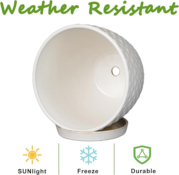 - Ideal Size: Each ceramic flower pot is 8.5 D x 7.5 H, which can provide enough space for your plants to thrive. One package includes white planter, ceramic tray and mesh