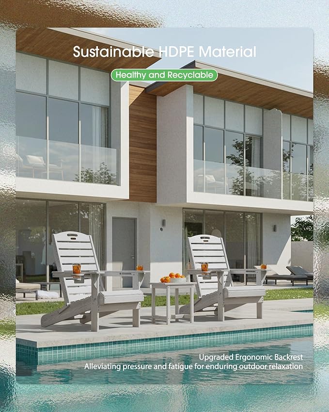 - Weather-Resistant: Made of high-quality HDPE material with wooden texture, SUUNYN sturdy adirondack chair offers excellent weather resistance, resisting fading, splitting, cracking, chipping, peeling, and rotting in harsh conditions. Plus, its easy-to-clean surface and low maintenance