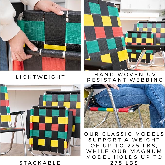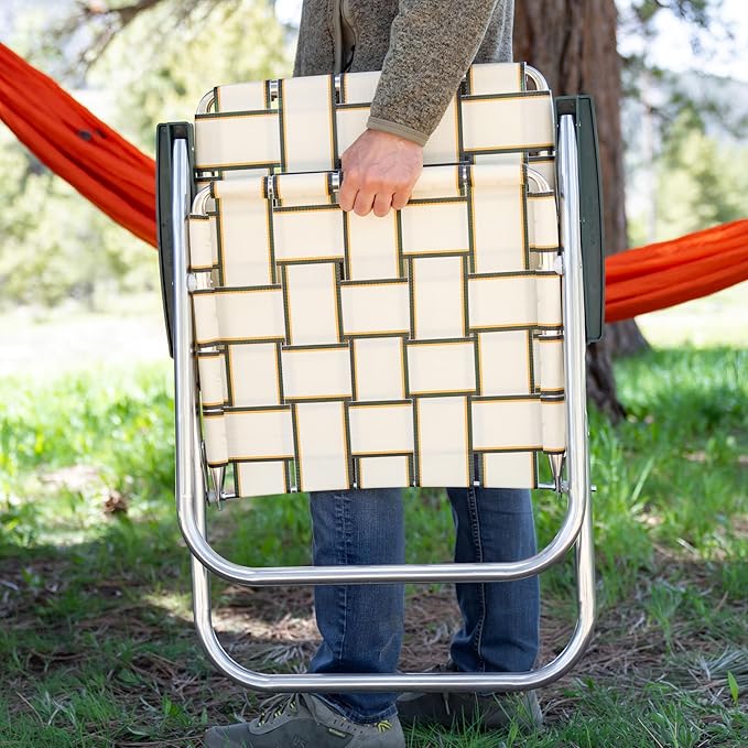 Lawn Chair USA Folding Aluminum Outdoor Patio Lawn Chair | Heavy-Duty Webbed Chairs for Camping, Sports, Beach, Yard & Tailgating | Lightweight Portable | Classic - Charleston Tan with Green Arms