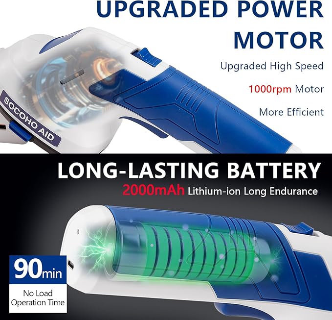 - Upgraded Power Motor: SOCOHO AID cordless bush trimmer upgraded with powerful motor the 2 in 1 design allows for quick and easy switching from trimming to mowing. even if you are a beginner, this handheld cordless lawn mower will meet your mowing needs