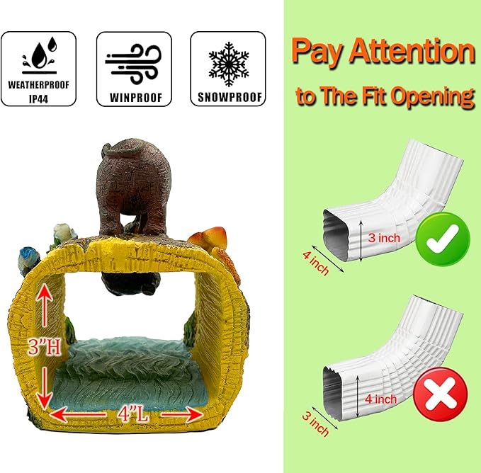 - Perfectly Sized for Most Downspouts: Measuring 7.48"L x 5.9"W x 6.3"H, this garden elephant statue is compatible with downspouts up to 3"L x 4"H. Simply connect it to your downspout and enjoy its efficient performance in your garden.